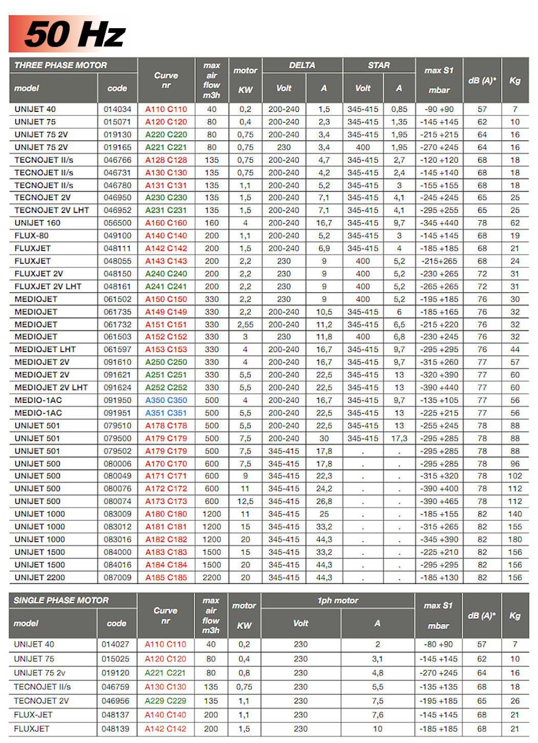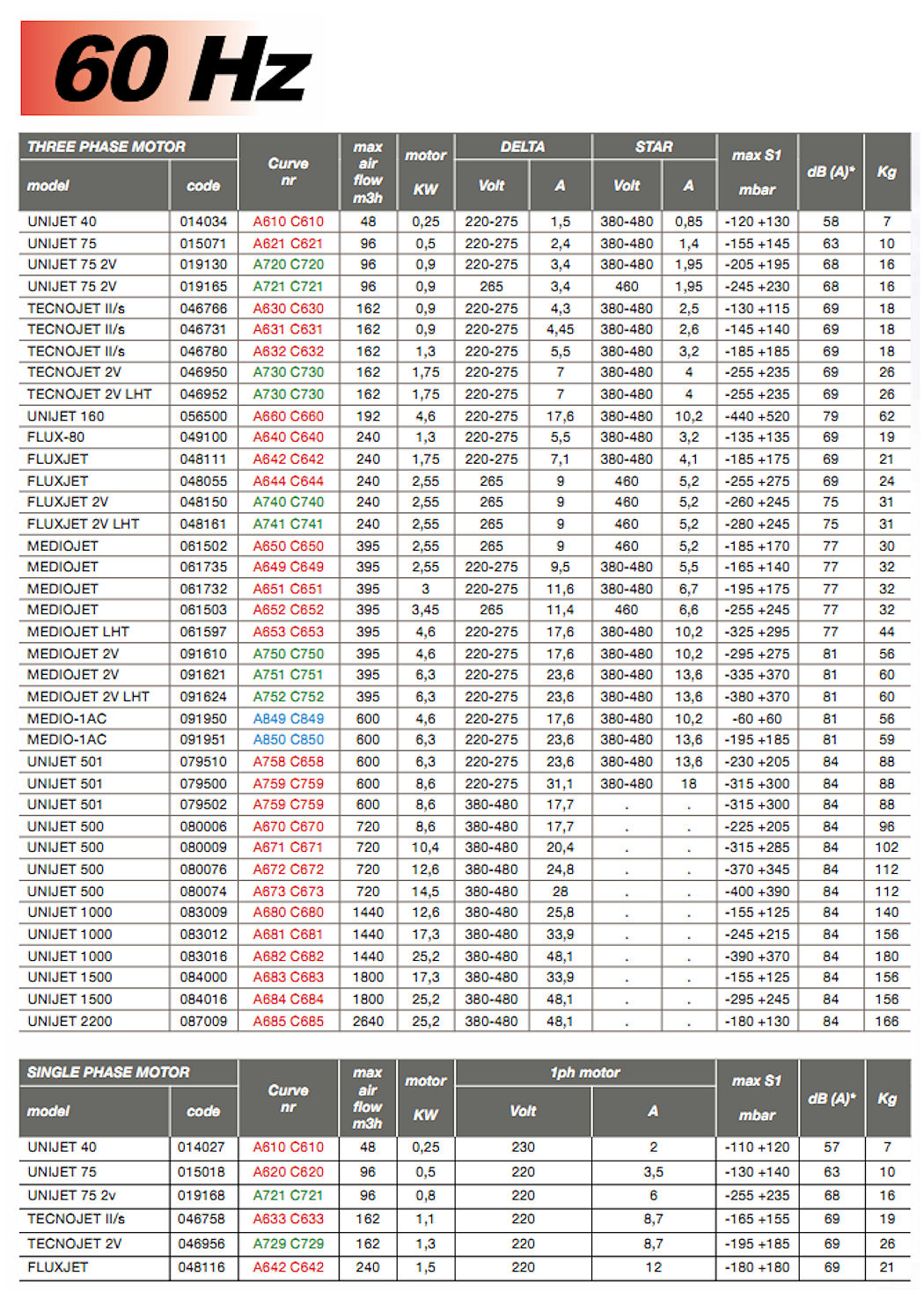The standard side channel blowers / aspirators are designed to handle clean air up to a maximum of 40°C.
