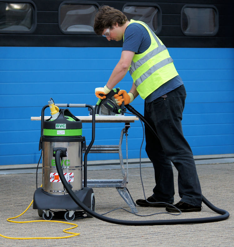 The BVC Greenline 1-41M M-Class Sitevac is designed for on-tool dust extraction and general cleaning jobs on Construction Sites . Fitted with 32A plug on yellow Arctic cable rated for 1.2kW vac + 1.5kW tool. The polycarbon antistatic pre-filter releases dust when switched off and helps to prevent filter blinding.