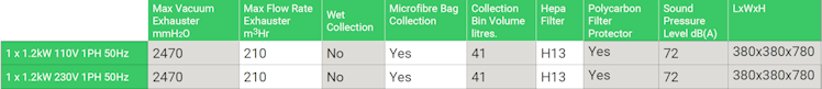 - 2470 mmH2O Vacuum 210 m3/hr Flow