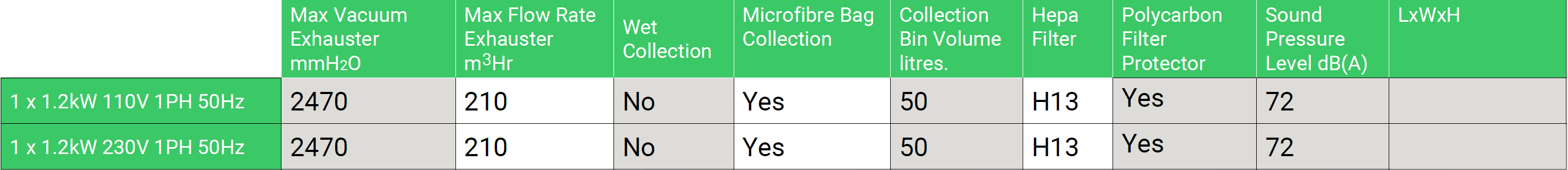 Supplied with conductive (antistatic) hose, a full set of tools and universal power tool connector BVC Greenline 1-50M is a large capacity easily manoeuvrable vacuum cleaner that meets all requirements for site use. 12 months trade use warranty with full spares backup.